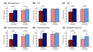 En este trabajo indagamos la relevancia del desempeño en pruebas de semántica de acciones y sintaxis como posibles marcadores preclínicos de la enfermedad de Huntington. Mientras que los pacientes ya diagnosticados presentaron déficits semánticos y sintácticos generales, sus parientes asintomáticos evidenciaron dificultades selectivas en los dos dominios de interés, independientemente de su desempeño cognitivo general. Estos resultados abren las puertas hacia nuevas alternativas de cara a la detección temprana de esta y otras enfermedades neurodegenerativas.