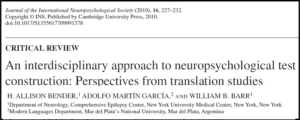 Bender, H. A., García, A. M. & Barr, W. (2010). An interdisciplinary approach to neuropsychological test construction: Perspectives from translation studies. Journal of the International Neuropsychological Society 16, 227-232. Online: http://1.usa.gov/191CVhD