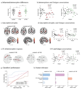 Este estudio muestra, por primera vez, que los síntomas de fatiga en los pacientes con esclerosis múltiple se encuentran asociados a alteraciones en el procesamiento interoceptivo– a saber, el monitoreo automático de la información corporal. Nuestros resultados se basaron en la combinación de medidas conductuales y de neuroimágenes con técnicas avanzadas de machine-learning que mostraron cómo las alteraciones interoceptivas permitían discriminar con un gran nivel de confianza a pacientes con síntomas de fatiga, de otros sin fatiga, y también de controles sanos. Nuestro hallazgo ofrece evidencias sin precedentes que sugiere que los déficits multimodales en interocepción podrían constituir un mecanismo subyacente a los síntomas de fatiga en los pacientes con esclerosis múltiple.