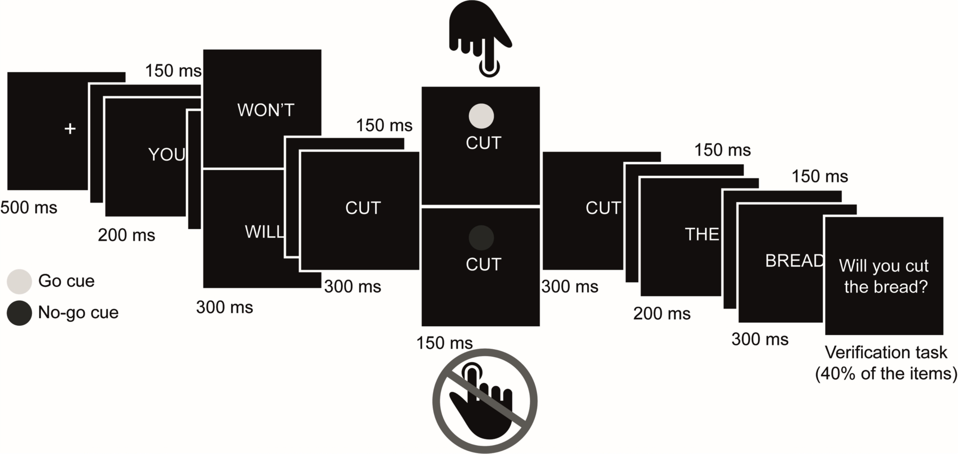 En este trabajo combinamos registros electroencefalográficos, neuroanatómicos y hemodinámicos con modelos de atrofia para indagar sobre los correlatos cerebrales de la negación lingüística. En personas sanas, el procesamiento de la negación se asoció con mayores modulaciones oscilatorias típicas de la inhibición motora. Dicho efecto se vio anulado en pacientes con la variante conductual de la demencia frontotemporal (vcDFT), caracterizados por síntomas inhibitorios primarios. Además, dicha modulación anormal en los pacientes correlacionó con alteraciones anátomo-funcionales de regiones y redes inhibitorias. Estos resultados indican que el procesamiento de la negación lingüística se enraíza en mecanismos cerebrales inhibitorios, lo cual permite refinar modelos neurolingüísticos actuales y delinear posibles marcadores multidimensionales de la vcDFT.