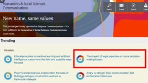 Our paper on Judges’ and Attorneys’ moral judgment bias is trending in Humanities & Social Sciences communications