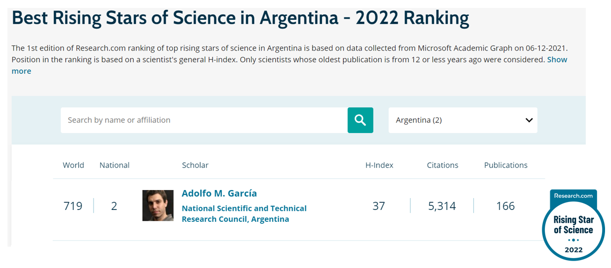 El Dr. Adolfo García fue reconocido por el portal Research.com como una de las principales dos estrellas emergentes de la ciencia en Argentina. ¡Felicidades, Adolfo!